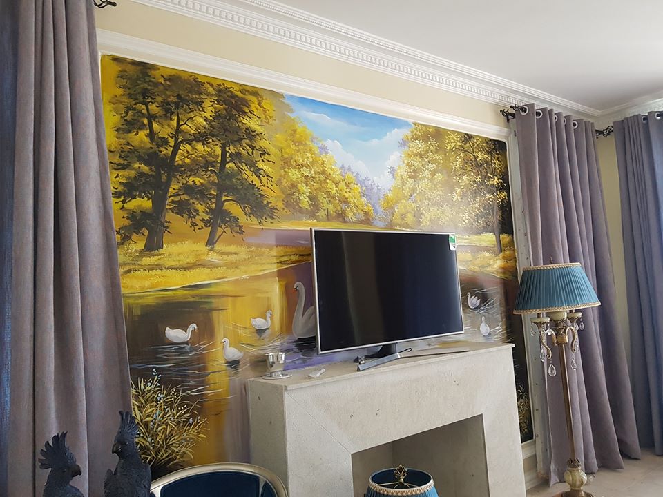 Bên cạnh đó, các mẫu tranh dán tường 3d Khánh Phát cho phòng khách cũng được nhiều gia chủ ở Đà Lạt lựa chọn, bởi lẽ tranh phong cảnh dán ở phòng khách rất đẹp, vừa sang trọng, hiện đại, vừa gần gũi và tạo cảm giác hài hòa với thiên nhiên đất trời, mang lại cảm giác thư giãn cho gia chủ.